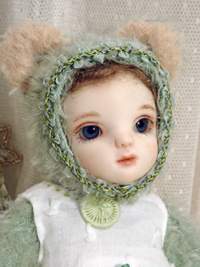 シトロン 17cm 球体関節 ビスク グラスアイ ウィッグ貼付 シルク 綿 革 スタンド付 猫耳を付けた小さくて可愛い少年。 春の爽やかな風のように清々しく、あどけない表情に賢そうな瞳をしています。 |
