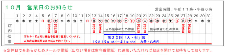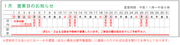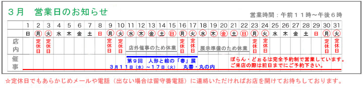 メール(dols@k3.dion.ne.jp)や電話(03-6780-0338)で前日までにご予約ください。