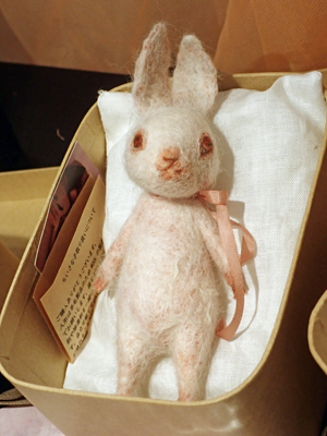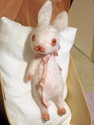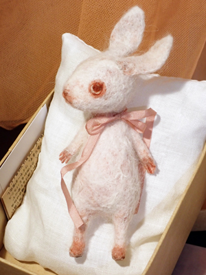 | ウエノミホコ 「白兎A(右向き))」 11cm ポーズ 羊毛 ワイヤー ヘッド固定 箱・クッション付 |