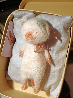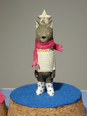 | ウエノミホコ 「猫」 11cm ポーズ 羊毛 ワイヤー ヘッド固定 箱・クッション付 |