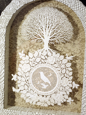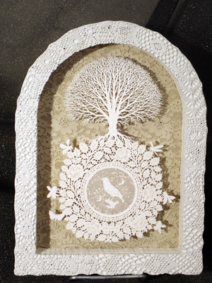 | しろこまタオ 「P.W. Tree-06」 22.2×28.5cm 木版画 woodcut papercutting embossing |