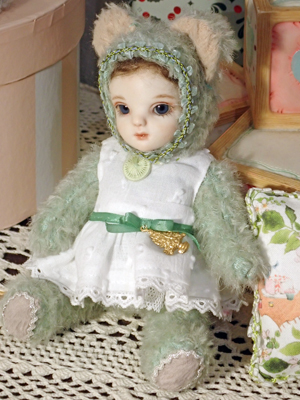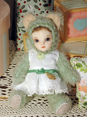 | 青扇 「森の妖精(Neriネリ)」 17cm ビスクフェイスぬいぐるみ ビスク グラスアイ モヘア ガラスペレット 化繊綿 クッション付 |