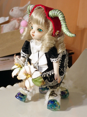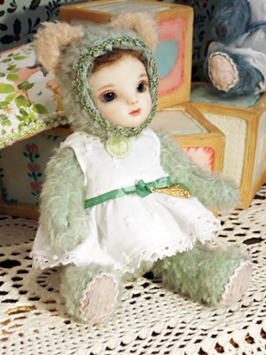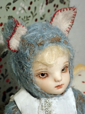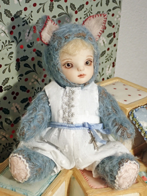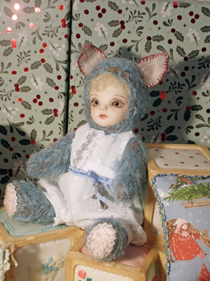 | 青扇 「森の妖精(Nolleノル)」 17cm ビスクフェイスぬいぐるみ ビスク グラスアイ ジャーマンモヘア ガラスペレット 化繊綿 クッション付 |