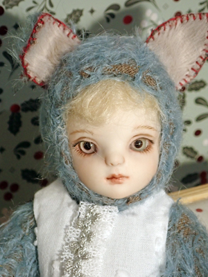 | つきもとつきこ 「於菟丸−オトマル−」 29cm 文化人形 手足・服:アンティーク正絹 髪:モヘアヤーン 木毛 |