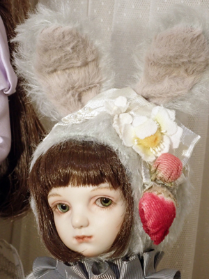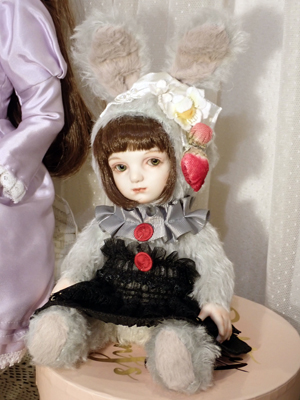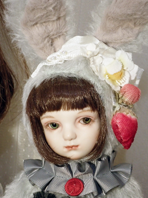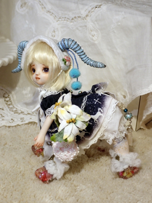 | 青扇 「苺ちゃん」 28cm ビスクフェイスぬいぐるみ ビスク グラスアイ ジャーマンモヘア クロスボディ 綿 布花 |
