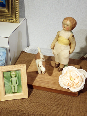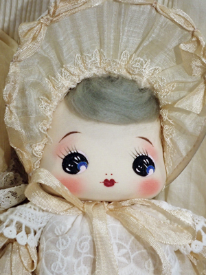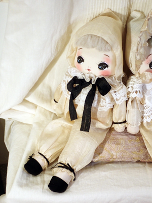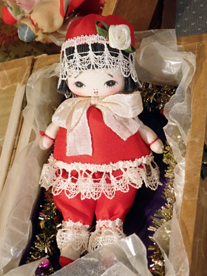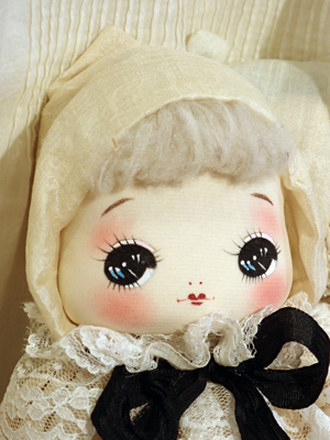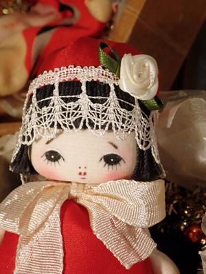 | つきもとつきこ 「ちいさい人 白ばら」 14cm 文化人形 手足:アンティーク正絹 服:アンティーク紅絹 |