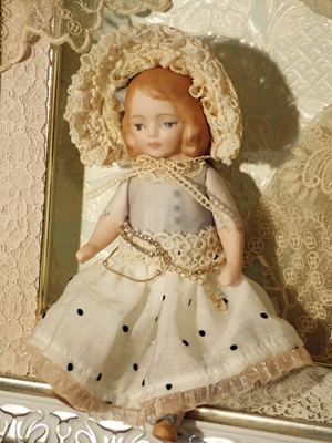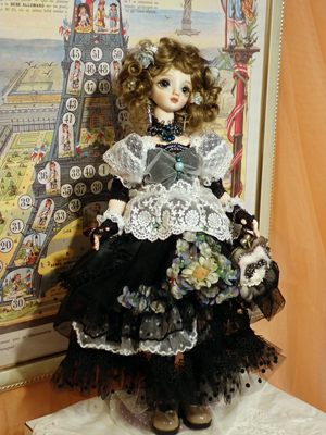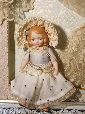 | つきもとつきこ 「杏奴−アンヌ−」 31cm 文化人形 手足・ドレス:アンティーク正絹 髪:モヘアヤーン 木毛 |