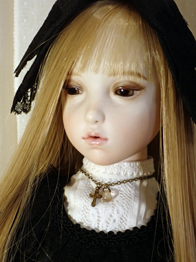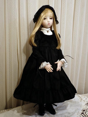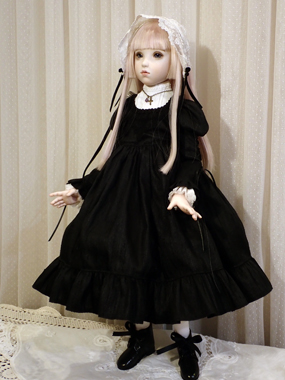 聖夜(せいや) 44cm ¥253,000(税込) 球体関節 ビスク 耐熱毛 グラスアイ シルク コットン お姫様カットのゴスロリファッションの少女。 厳格で禁欲的な装いは彼女の清楚な美しさとミステリアスな魅力が溢れています。  |