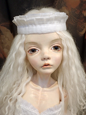 Cloudia(クラウディア) 48cm ¥187,000(税込) 球体関節 石塑粘土 油彩 アクリル グラスアイ チベットラム ふわふわな雲のような自由で高貴な少女。 繊細で美しい肌や物思いに耽っているような大きな瞳が不思議な存在感を感じます。  |