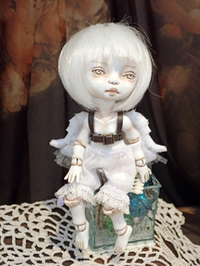 Lymiel(リュミエ) 14cm ¥88,000(税込) 球体関節 石塑粘土 胡粉 油彩 アクリル 耐熱ウェフティング 天使に憧れて、天使に間違われて欲しい小さな子。 小さいけれど繊細で、いじらしい可愛さにきゅんとなります。  |
