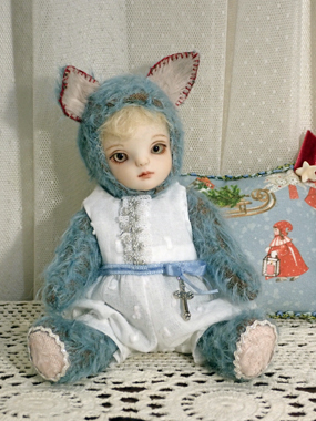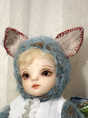 シトロン 17cm 球体関節 ビスク グラスアイ ウィッグ貼付 シルク 綿 革 スタンド付 猫耳を付けた小さくて可愛い少年。 春の爽やかな風のように清々しく、あどけない表情に賢そうな瞳をしています。 |