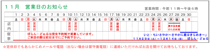 メール(dols@k3.dion.ne.jp)や電話(03-6780-0338)で前日までにご予約ください。